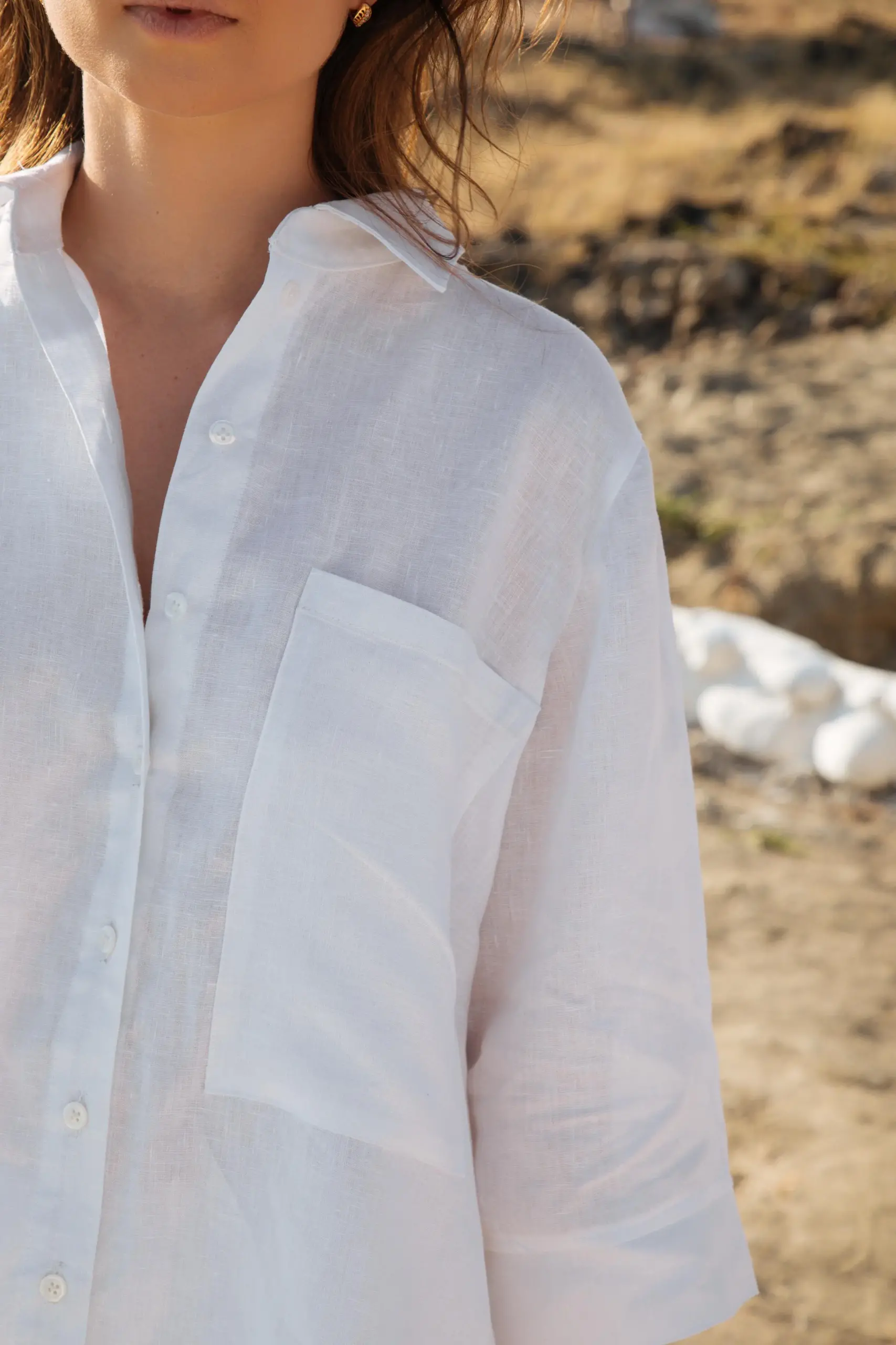 Camisa manga corta y cuello abierto de botones alargados para usar a tu gusto corta o larga, abierta o cerrada de acuerdo a la ocasión, holgada, cómoda muy chic y elegante.